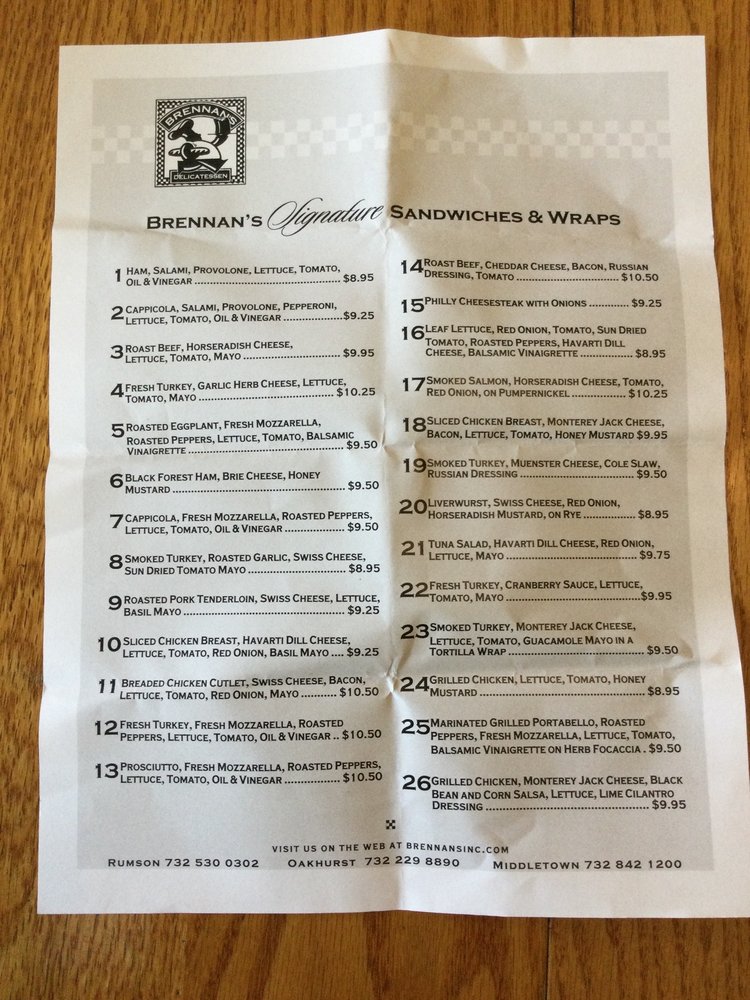 Introducing the menu at Brennan's Delicatessen of Rumson, a hidden gem located at 38 W River Rd, Rumson, NJ. This inviting deli strikes a perfect balance between traditional flavors and contemporary twists.